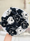 یک گل رز از جنس همان اسکرانچی که بسیار زیباست روی آن قرار دارد و باعث می شود این کش مو تبدیل به یک کش موی مجلسی هم بشود .