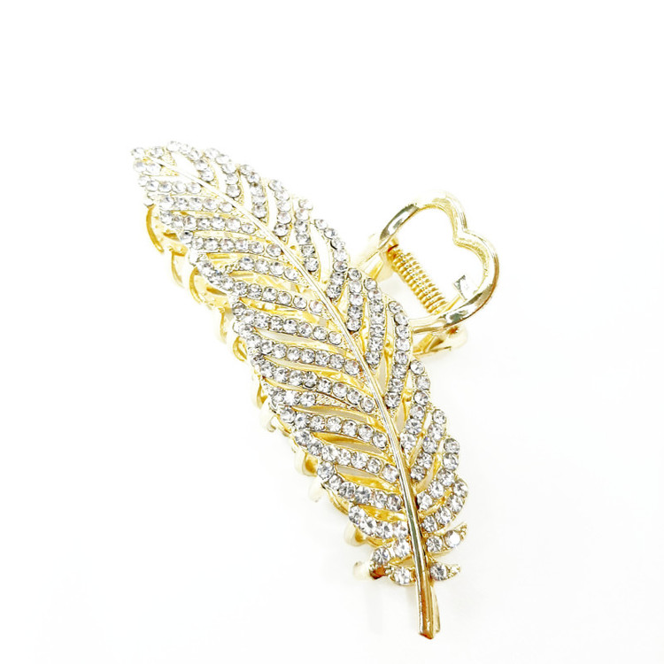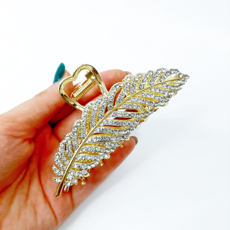کلیپس مو زنانه مدل فلزی طرح برگ نگینی