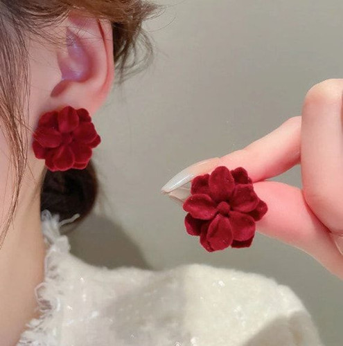 ناموجودگوشواره یلدایی گل قرمز مخمل